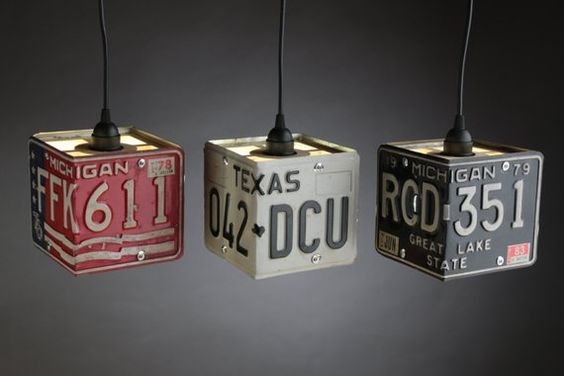 Voici une idée amusante pour recycler une vieille plaque d’immatriculation. Le look vintage de cette lampe est tout simplement parfaite. Elle est en vente sur eBay mais rien ne vous empêche de fabriquer vous-même cette lampe avec un kit de lampe de base. Cet Abat-jour en suspension est fait à la main à partir de plaques d’immatriculation. Certaines plaques d’immatriculation sont en aluminium et d’autres en acier. Les plaques peuvent être de formes et de dimensions variées : carré ou rond. Ce type de décoration ira parfaitement dans un décors de pour garage ou un décor industriel.