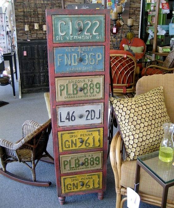 Le meuble de rangement en plaques d’immatriculation